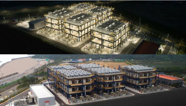 7.28日,设置安装了斗山114台M400型号(440kW)产品的韩国大山燃料电池发电站正式竣工,大山燃料电池发电站是全球首个使用工业副产氢作为燃料的,也是全球最大规模的氢燃料电池发电站。本次投入使用的M400型产品功率为440kW,单体尺寸为8.3m x 2.5m x 3.0m,安装114台的发电站装机容量为50MW,未来20年斗山将作为设备运营管理方对设备进行维修和保养。
