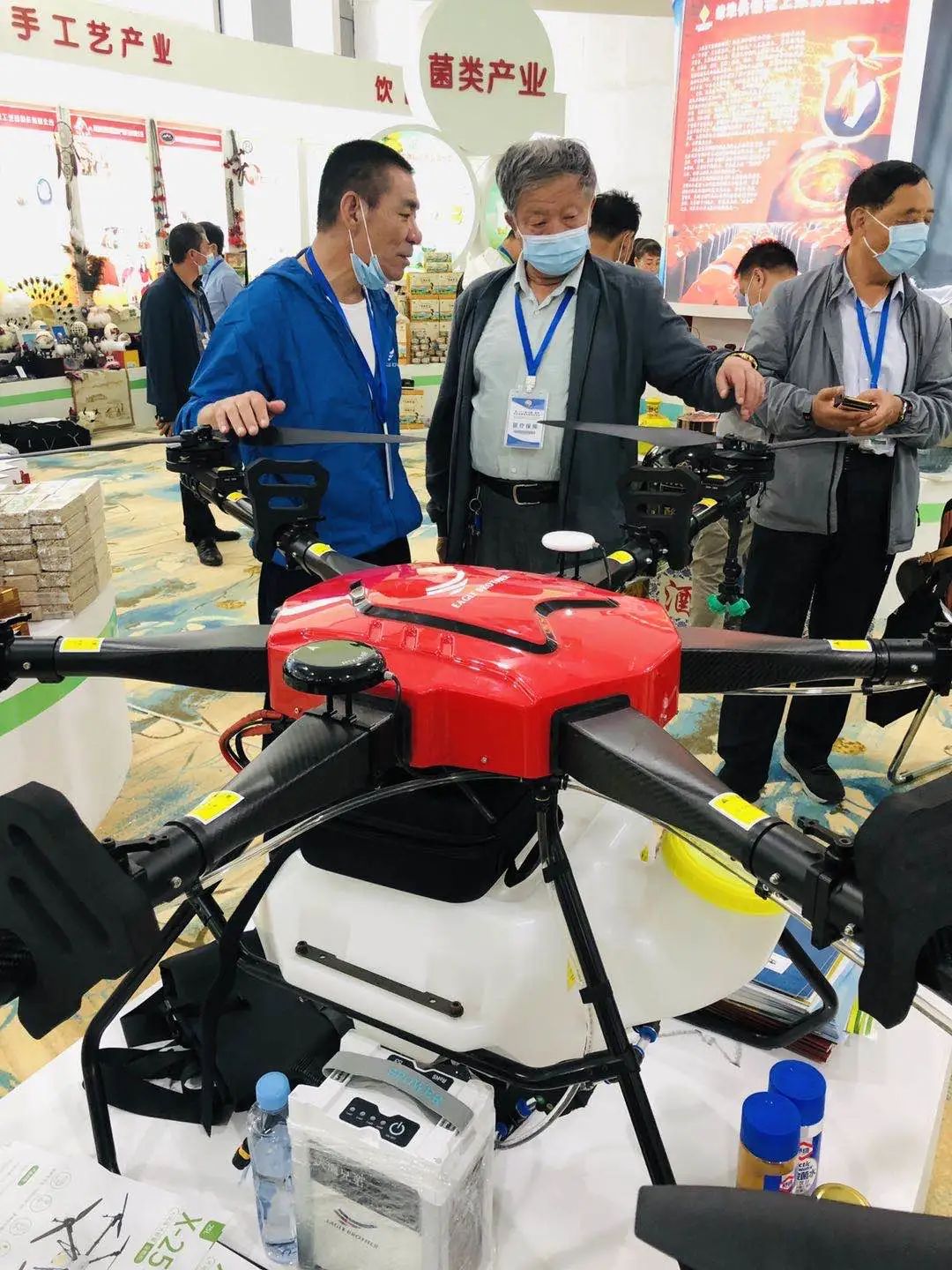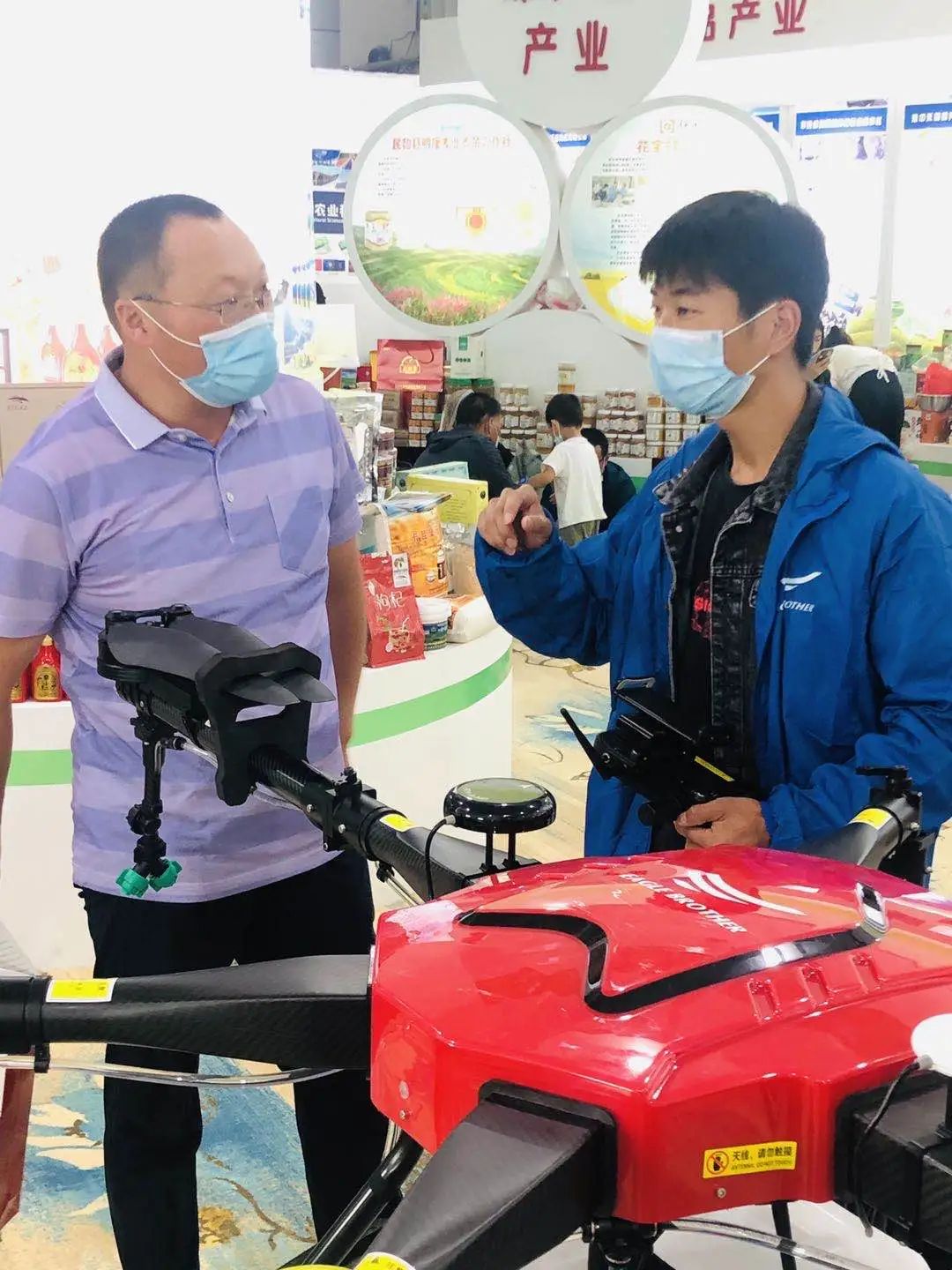 产品吸引不少前来参展客商纷纷驻足,并向现场负责人询问产品性能、作业面积、作业效率等问题。通过现场全面讲解,对天鹰兄弟植保无人机表示充分认可。