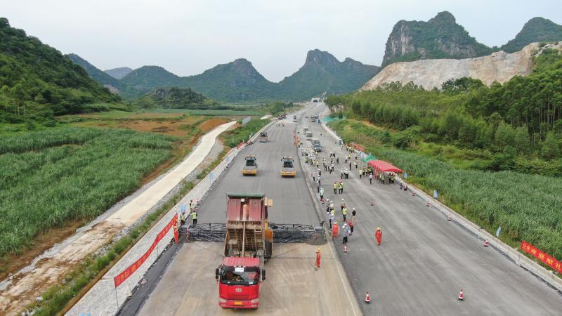 为了保障施工的高标准、高质量,广西路桥在此次建设中精准创新,率先应用徐工无人机群进行稳定土摊铺压实,使这条高速成为全球首条应用无人机群的水稳高速。
