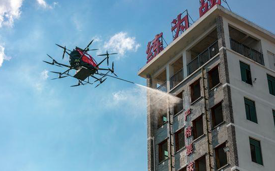 全球领先的客运无人机公司亿航并未开发全新的客运无人机,而是迅速变身应用,推出了一款新版灭火无人机了亿航216F。