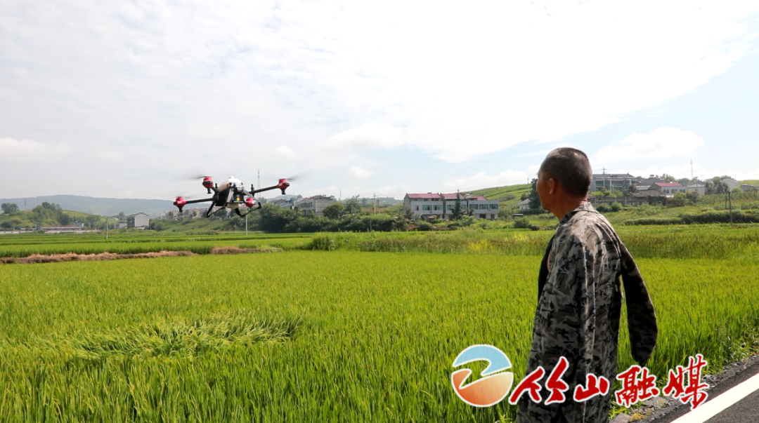 村民吴树成听说技术人员到村里开展“飞防”作业,一大早就来到自家的地块等待,3亩水稻10多分钟就完成了农药喷洒。