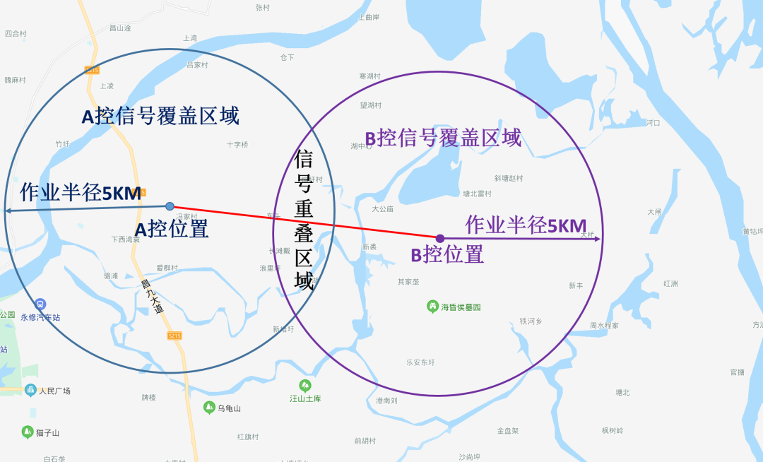 A 组人员操控无人机飞行至 5 公里左右的接应点后,B 控在空中获取控制权。随后,B 组人员继续在 B 控信号覆盖范围内进行巡查搜救工作。在单机双控模式下,现场仅一台无人机就完成了直径 12 公里范围内的安全侦察任务,效率大幅提升。