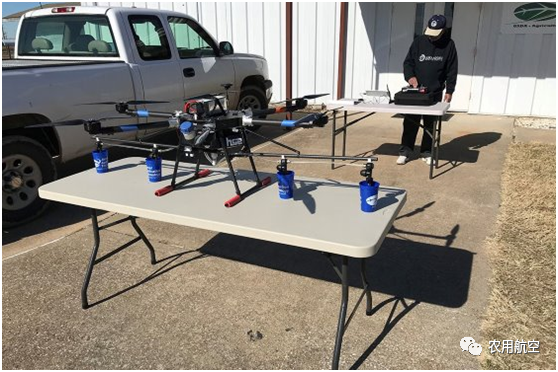 在静态校准过程中,研究人员还评估了标准“现成”喷药无人机附带的设备设置和水平。