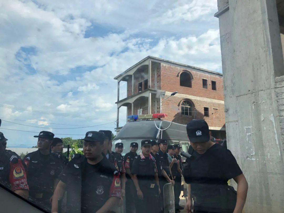 警方力量集结至厚坊村西边一座大山