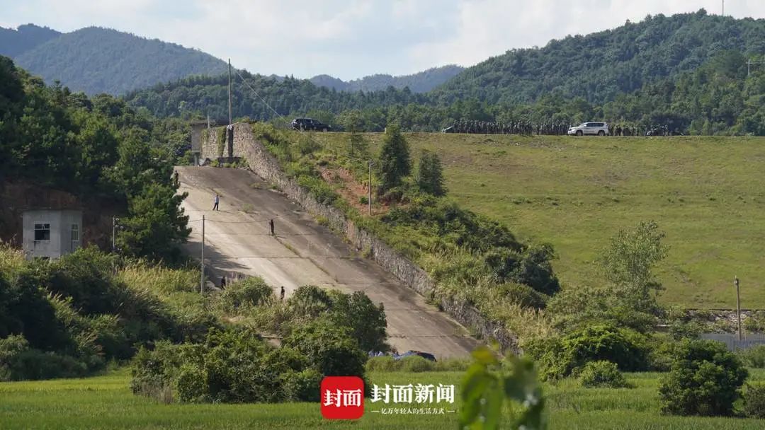 厚坊村位于丘陵地带,大山连绵,植被茂密。近日持续高温,为了分辨身份,警方依然穿着制服或迷彩服进行搜捕。