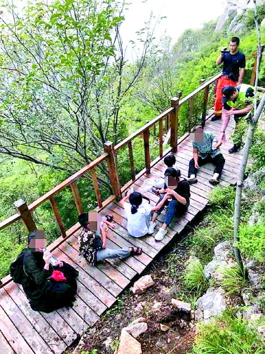 从中午12时开始,张女士一行开始爬山,经过三个多小时的攀爬,他们发现自己已经迷路了,好在张女士在迷路的地方发现了青铜山大峡谷景区的标志物玻璃栈桥,但是孩子实在是走不动了,而且他们手里只剩一瓶矿泉水补充水分了,无奈之下选择报警。