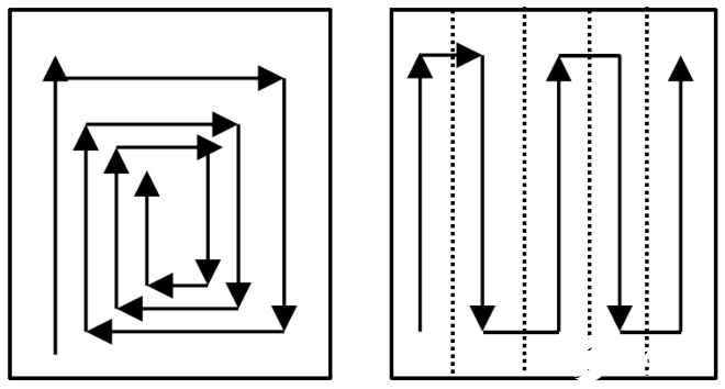 图3 螺旋式覆盖和往返前进式覆盖