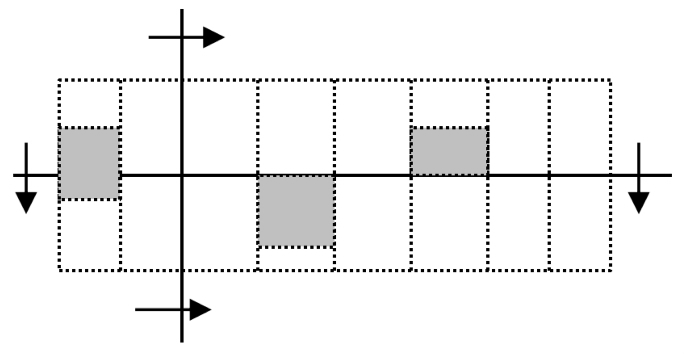 1)外轮廓较为复杂时,可以把整个区域划分为若干个子区 域。子区域的划分采用双线扫法, 如图2。用水平和垂直两个直线,水平直线自上而下,垂直直线从左往右, 两根直线会在轮廓边缘相交或者相切,由此可以划分出几个独立的子区域。