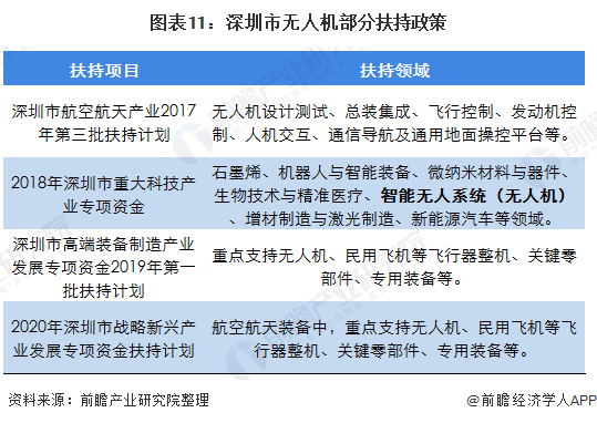 深圳能成为“无人机之都”的原因还有深圳政府的大力扶植,为发展无人机行业,深圳市制定了《深圳市航空航天产业发展规划(2013-2020年)》,并每年分批次进行扶持,其中无人机就是重点支持领域,扶持的领域包括无人机设计测试、总装集成、人机交互等。深圳市政府将无人机列为发展重点,支持建设无人机产业基地。此外,在无人机“黑飞”事件不断时,深圳率先发布无人机管理办法,推动无人机产业健康发展。
