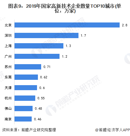 此外,作为一座科技创新驱动的城市,深圳的国家高新技术企业数量一直排在全国前列。截至2019年底,全国高企数量突破21.5玩家,其中深圳1.7万家,排名全国第二,仅次于北京的2.8万家。持续增长的高新技术企业不断承担着创新任务。