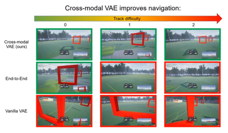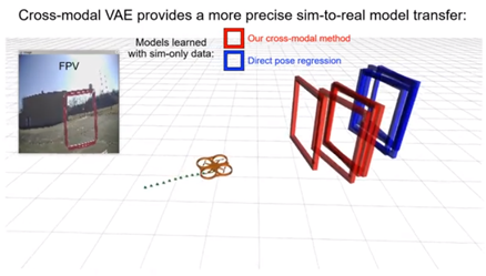使用多种模式对模型进行教学,增强了对无人机经验的有力描述,这意味着它可以理解场和门的本质,从而从模拟转化为现实。压缩图像以减少像素有助于此过程。通过对低维表示的学习,可以使模型看穿现实世界中的视觉噪声并识别出大门。