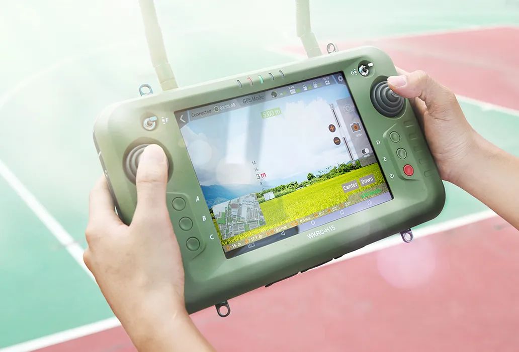 包括地面端(遥控器)、天空端(图传通信模块)及飞控端三位一体的全套解决方案。集成 7.86 英寸2K高亮显示屏,屏幕最高亮度达2000 cd/m²,在强光直射下仍清晰可见,亮屏状态下持续工作时长高达4.5小时。配套的FCS-F8飞控能在高压线、码头、矿场等特殊应用场景下具备强大的抗干扰能力。