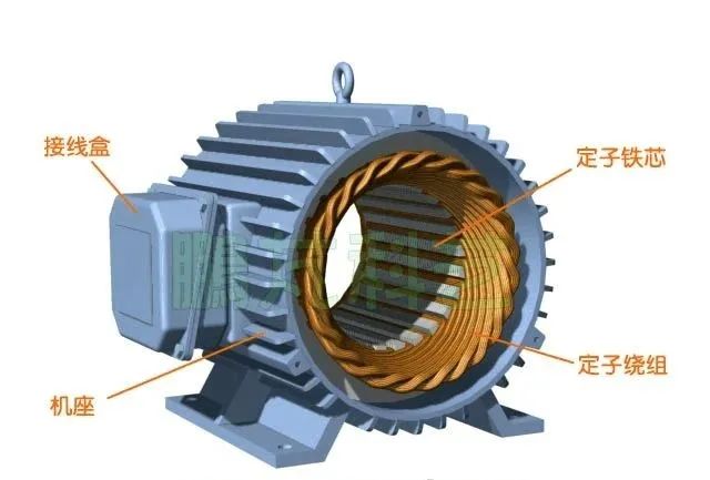 永磁同步电动机一般由:定子,转子,端盖等部件组成。如下图:
