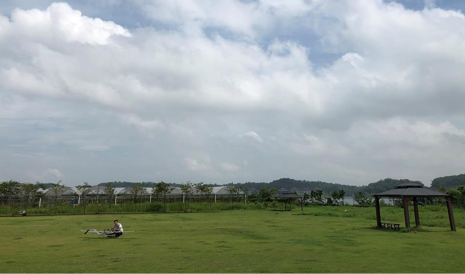 连日阴雨绵绵的间隙,铺着片片白云的蓝天终于登场了。光点科技的工程师及客户一行九人,载着两台光点科技的大雄鹰无人机,整装出发直达验收场地。