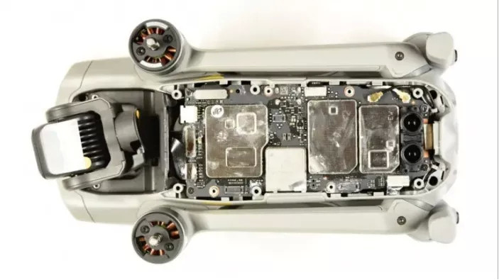 大疆 Mavic Air 2的拆解找到不少美国制造的零件,特别是芯片。例如,控制电池的IC芯片由德州仪器(TI)制造,放大无线电信号并消除噪声的IC芯片由Qorvo制造,图像处理器方案芯片来自Ambarella。