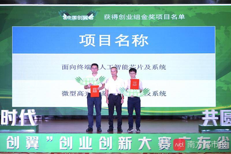 “中国创翼”创业创新大赛广东选拔赛创业组金奖项目得奖者获颁证书。