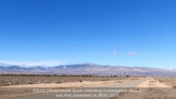 这种无人机叫做 SQUID。去年的初代 SQUID 是一种四旋翼飞行器,可以从管道中发射,在空中展开,并过渡到稳定的飞行状态,而无需固定的起飞坪。