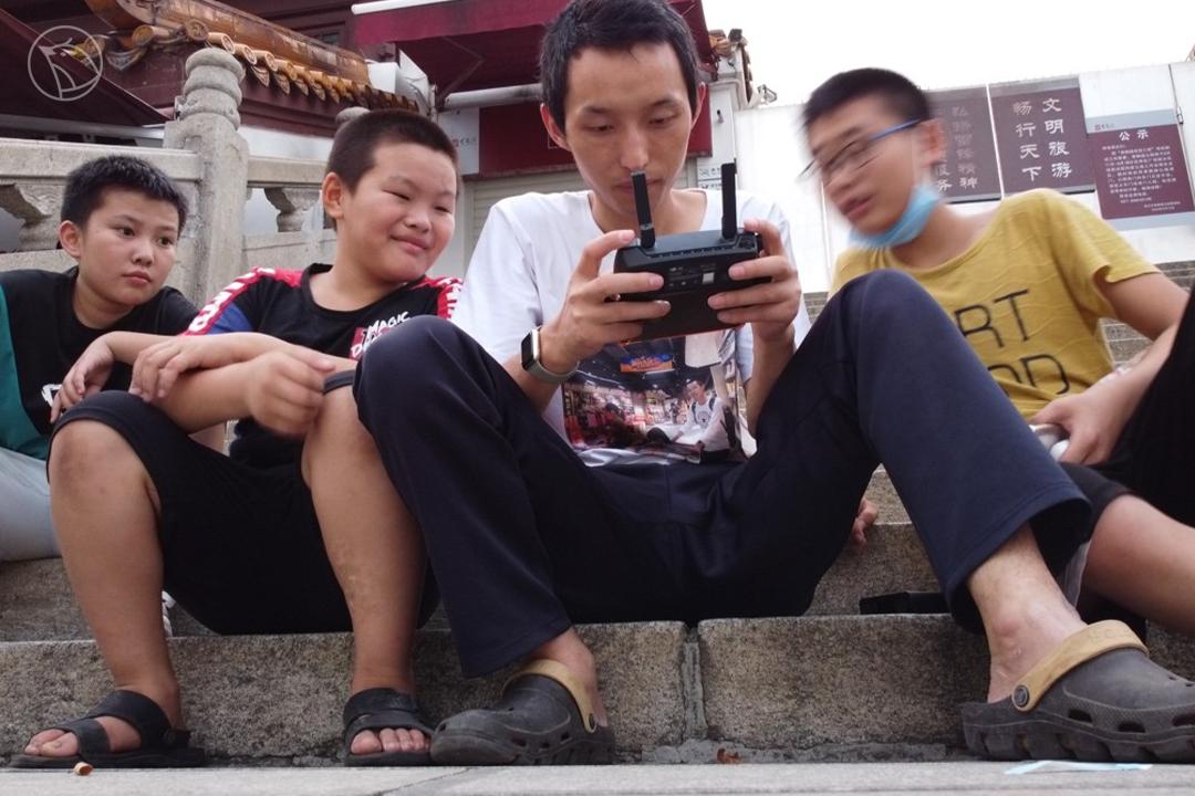黄金鑫和孩子们在航拍地标性景点