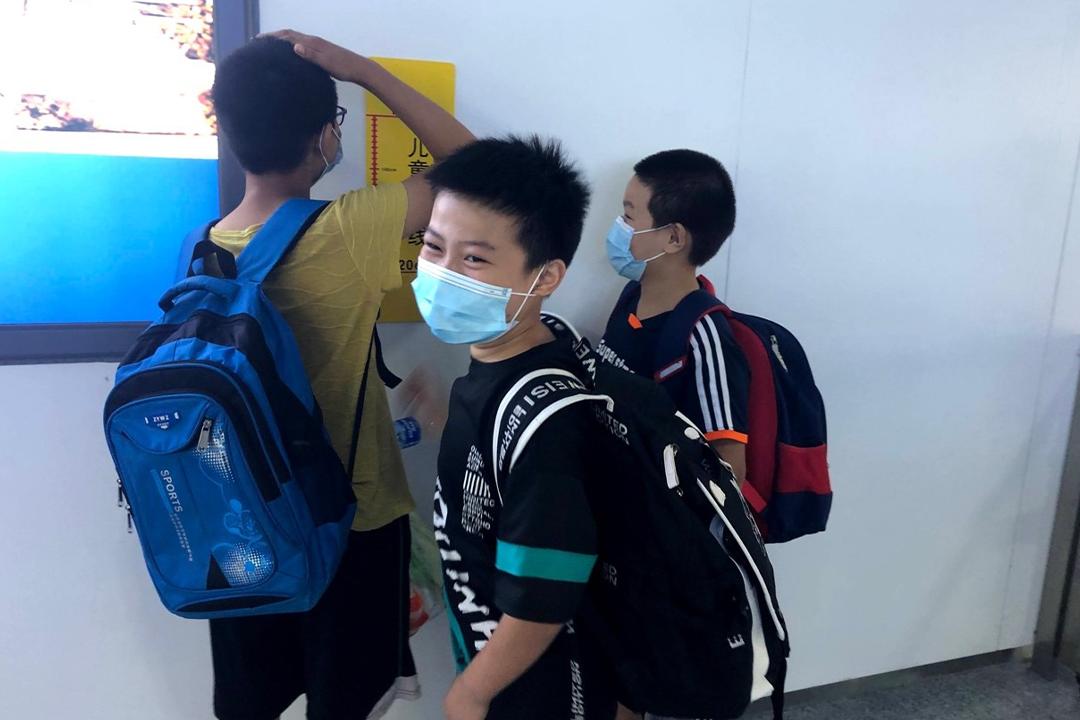 车站,孩子们等待出站,这是有些孩子第一次坐火车