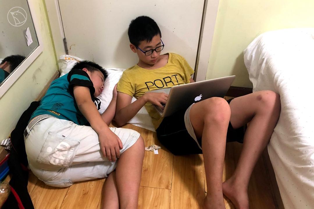 学累了,黄金鑫会领孩子们去他的“秘密驻地”。“驻地”在他二姨家三楼,一个20平的水泥地面的房间,窗户贴上了遮光膜。他在网上买了一套二手的VR设备,自己重装了系统,没啥毛病,就开机得调试个大半个小时,孩子们啃着手等待。
