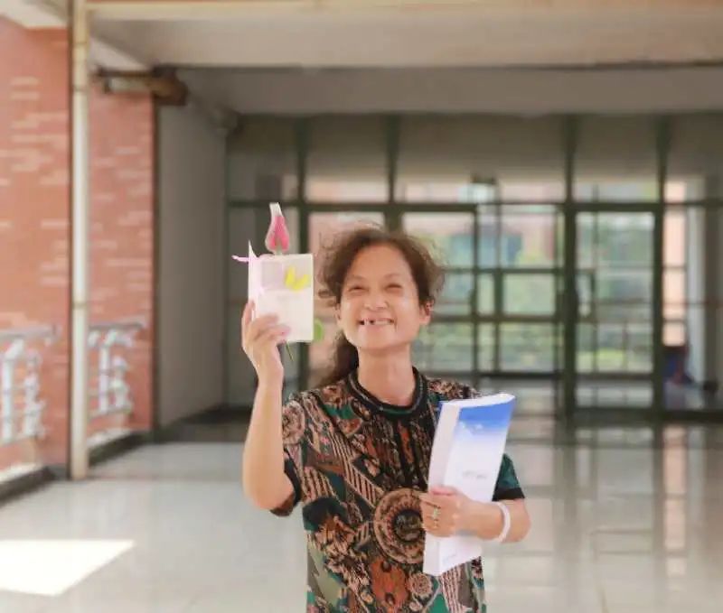 正经过走廊准备去上课的付文老师收到了第二份惊喜礼物,娇艳欲滴的玫瑰连同贺卡一起送到付老师面前。取下玫瑰和贺卡的付老师,难掩内心的喜悦。