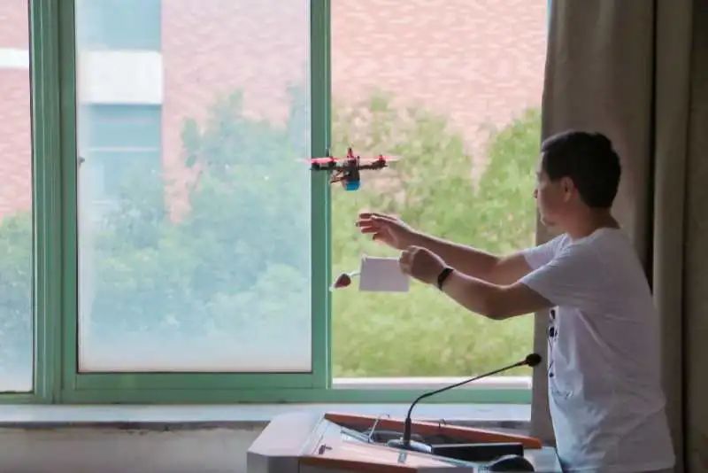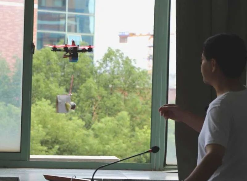 在G栋408教室,通航学院的乔柯老师正在给专心致志的同学们讲解着专业知识。窗外的无人机的悄悄出现成为了这堂课的一个小插曲,在同学们整齐的“祝老师教师节快乐”的话语中,乔老师取下这份包涵着满满心意的礼物。