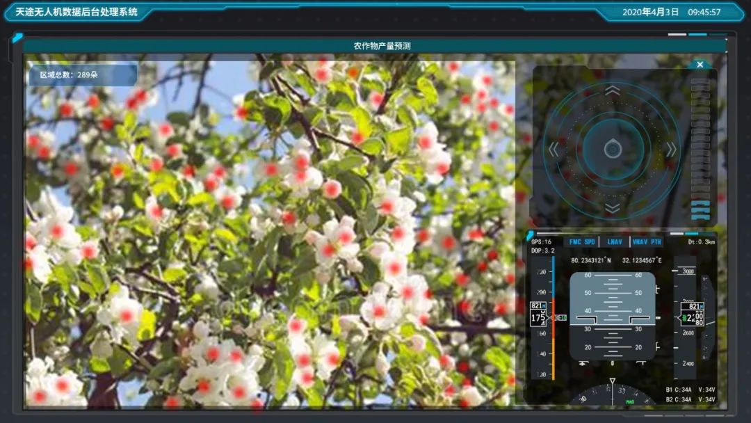 大面积的农作物耕种自然少不了无人机与大数据的协作。每年四月山东寿光的苹果花只盛放一周的时间,苹果花的数量直接反映出今年苹果的产量,如何能在一周的时间里,评估出上万亩的苹果园数出每一棵树上苹果花的数量至关重要,可以精确出未来采摘时产量,从而提前预知对物流、仓储的压力。