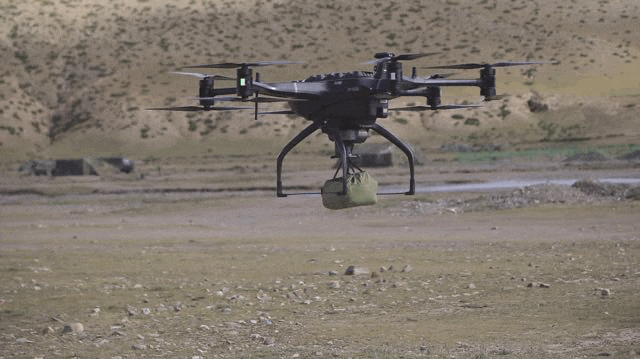 日前,西藏军区演练无人机送餐