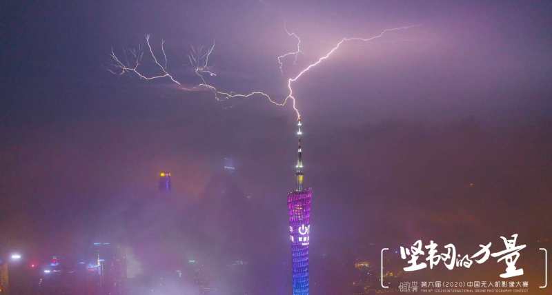 (瞰世界-第六届(2020)中国无人机影像大赛图片单元入围作品《雷击广州塔》)