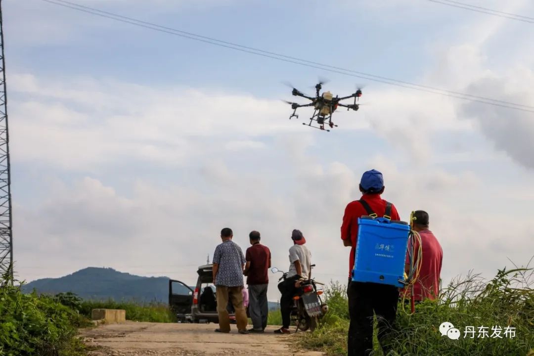 当下正是水稻生长重要时期,在东港市龙山村的水稻田里,一架无人机正在进行飞防作业。十几分钟工夫,十余亩稻田打药完毕。