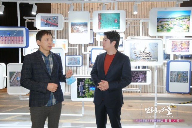 (张朝阳与郎朗在“航拍作品饕餮之夜”中共赏无人机影像作品)