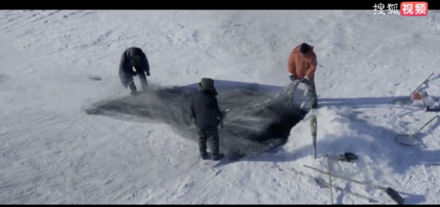 (第六届(2020)中国无人机影像大赛“最佳故事航拍”《冰之歌·冬捕》视频画面)