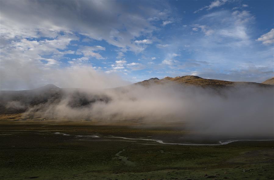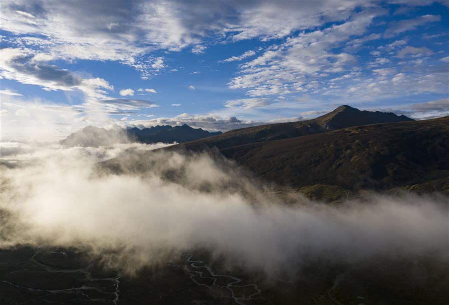 这是9月15日拍摄的邦达草原清晨(无人机照片)。 邦达草原位于西藏昌都市八宿县境内。高山深谷中的邦达草原是一块地势宽缓、水草丰美的高寒草原,也是野生动物的乐园。 新华社记者 普布扎西 摄