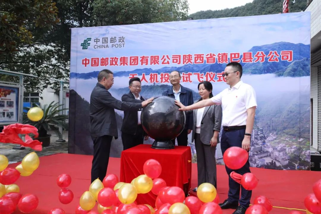 汉中市邮政管理局局长都金钊、县委常委宣传部部长王孝琴、汉中市邮政分公司纪委书记、副总经理王轮飞等领导进行了致辞,共同触摸启动球,宣布全省首条无人机邮路在镇巴正式开通运营,并一同见证无人机投送试飞。