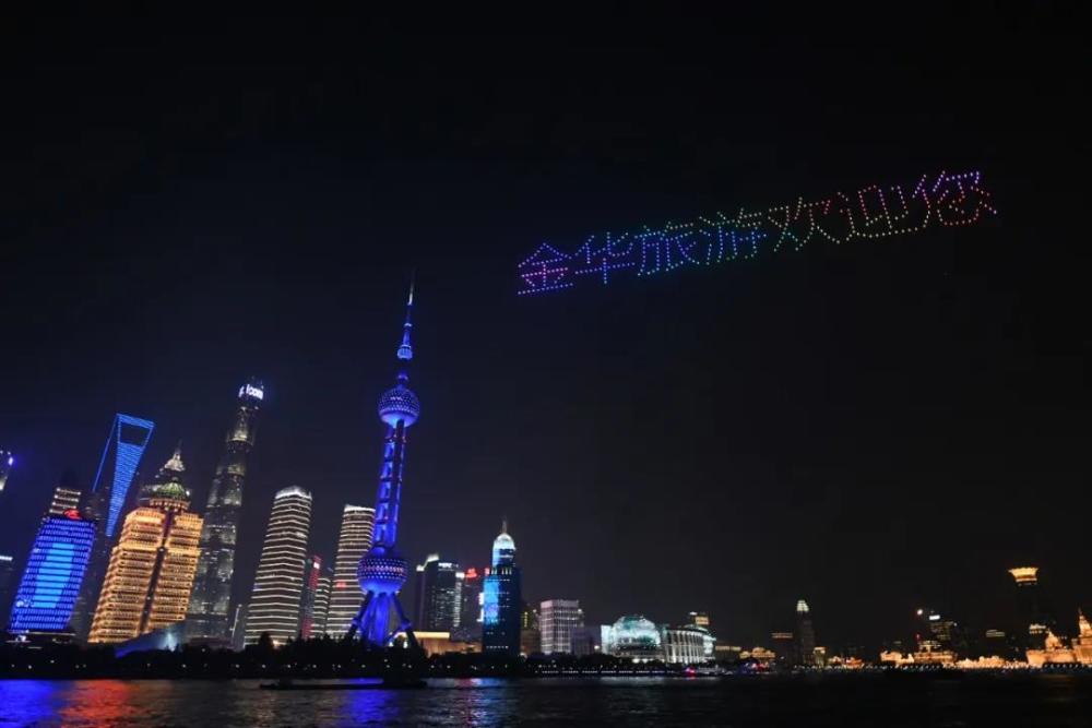 9月19日晚9点,“浙江之心 水墨金华”无人机秀点亮夜幕下的黄浦江,惊艳上海滩。浙江金华首开先河,将无人机秀应用于国内大型文旅推介活动中。在约15分钟的演出中,金华城市LOGO、金华区域图、金华火腿、金华文旅形象口号:“浙江之心 水墨金华”“百万上海市民游金华”“第二届中国(金华)李渔戏剧汇”“11月戏剧金华”等10个金华特色标志性图案闪耀外滩。金华,以无人机灯光秀的方式为上海市民呈现了一场美轮美奂的视觉盛宴。