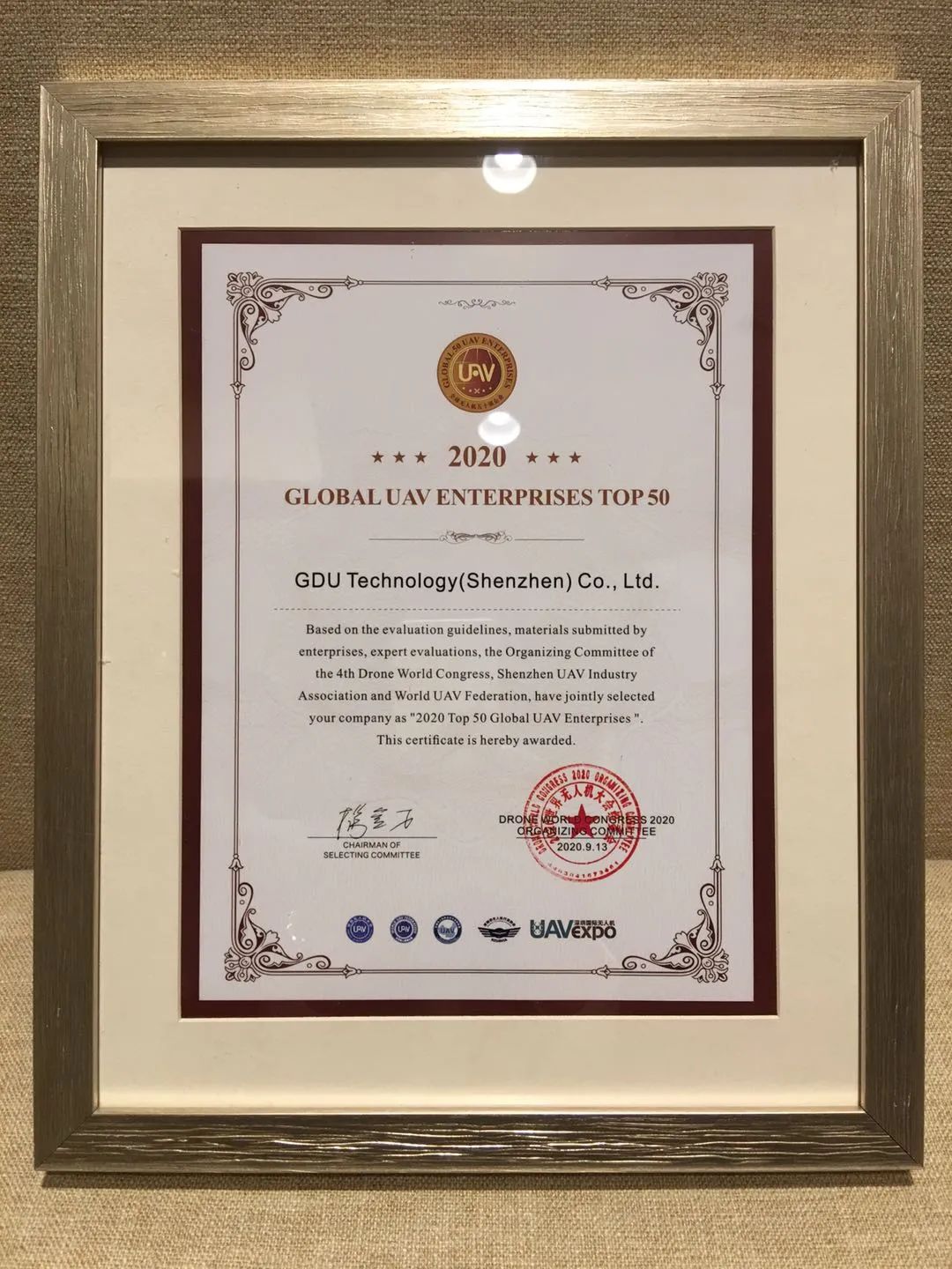 在开幕式上,全国数百家在无人机领域有丰富经验的著名投资机构,与各方专家院士、产业代表组成评审团,共同评选出“2020首届全球无人机五十强企业”,颁奖晚宴于9月13日晚在深圳华侨城洲际酒店举行。