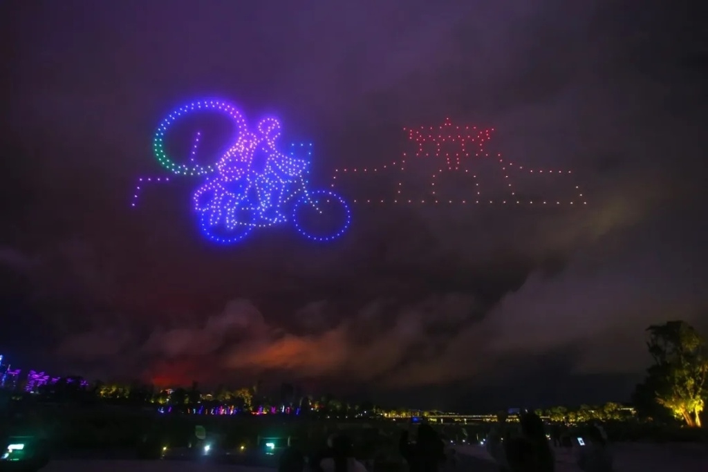 好炫!600架无人机灯光秀点亮遂宁夜空