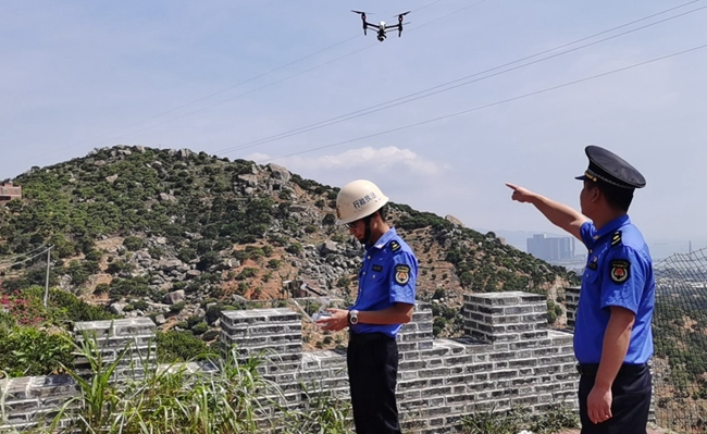 | 执法队员操纵无人机做高空巡查。漳州开发区宣传部供图 |