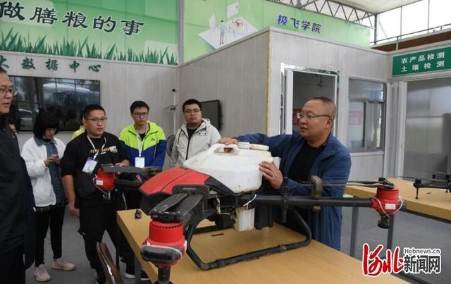 图为睿禾农业科技发展有限公司负责人对植保无人机进行讲解。 韩霄摄