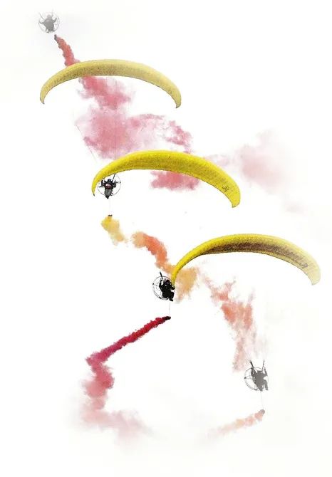 此外,开幕式上还上演动力伞编队飞行、动力悬挂滑翔机表演、山河特技飞行表演等,上千民众在雨中观赏这场“空中芭蕾”。