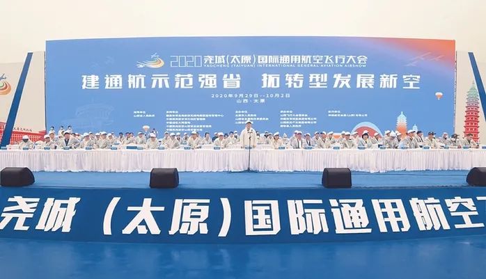 9月29日,2020尧城(太原)国际通用航空飞行大会在清徐尧城机场开幕。省委书记、省人大常委会主任楼阳生宣布开幕,省委副书记、省长林武致辞,省政协主席李佳出席开幕式。