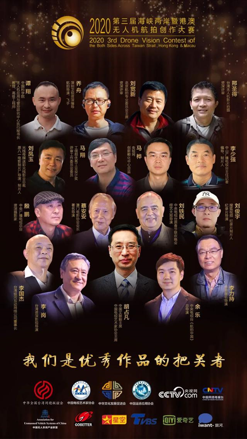 大赛组委会邀请中国文联副主席、中国电视艺术家协会主席胡占凡先生继续担纲本届大赛评委会主席,同时邀请影视行业、艺术领域、无人机航拍领域等各行业大咖为大赛作品质量全面审视把关,中央电视台原春节联欢晚会、综艺大观总导演刘铁民先生,中央电视台《航拍中国》总导演余乐先生,台湾资深影视导演李岗先生,香港著名导演李力持先生,澳门电影协会会长、著名导演蔡安安先生等继续为大赛评委。