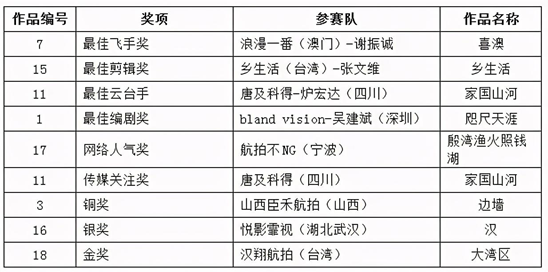 附:2020第三届海峡两岸暨港澳无人机航拍创作大赛航拍创作大赛决赛获奖名单: