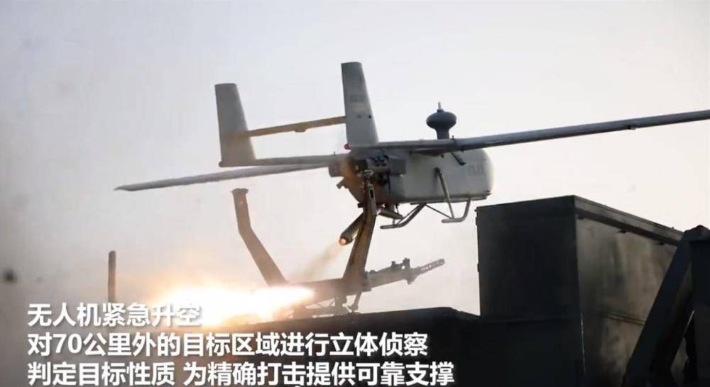 而第2个步骤这算是使用无人机是升空对目标区域进行侦查,判断目标性质。其实这个步骤在实战中,往往是可以在炮兵旅向预设阵地机动的路上进行的,这样在获取目标信息后,到达阵地几分钟就可以展开射击,打完就直接撤。之前侦查系统的最远距离只有70多公里,因此集团军级火箭炮只要求打100公里左右。现在无人机侦查距离更远,因此火箭炮在保证精度的情况下打击范围基本在200公里以上。