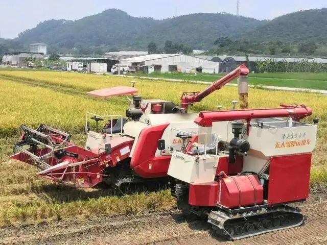 “收到。”在田边等候的运粮车,立即开到收获车旁边。收获机伸出卸粮筒,将稻谷卸到运粮车中,仅几十秒就完成了一次卸粮过程。在华南农业大学增城教研科学基地,中国工程院院士、华南农业大学教授、广东农村科技特派员罗锡文团队的水稻无人农场,是目前全国首例“耕、种、管、收”全程无人机械化作业的水稻农场。