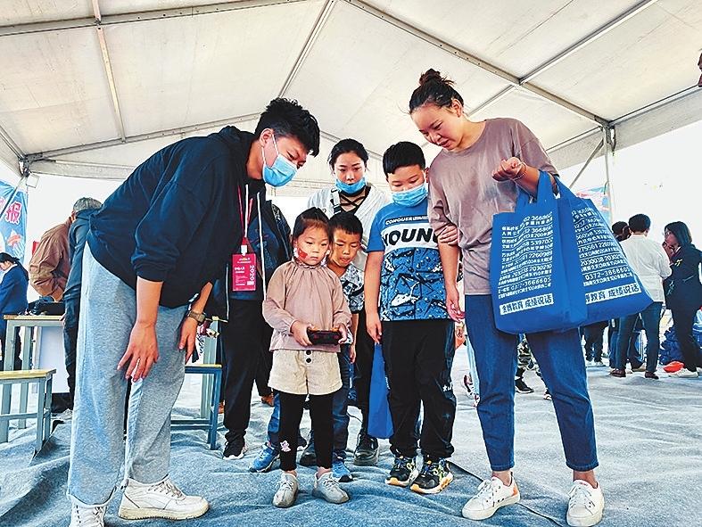 孩子们在博览会上体验无人机飞行器赵阿娜摄