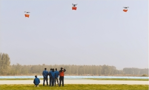 细河在阜新市海州区韩家店镇南营子村,拐了一个大大的“S”形。在这个湾区里,一架架无人机腾空而起。