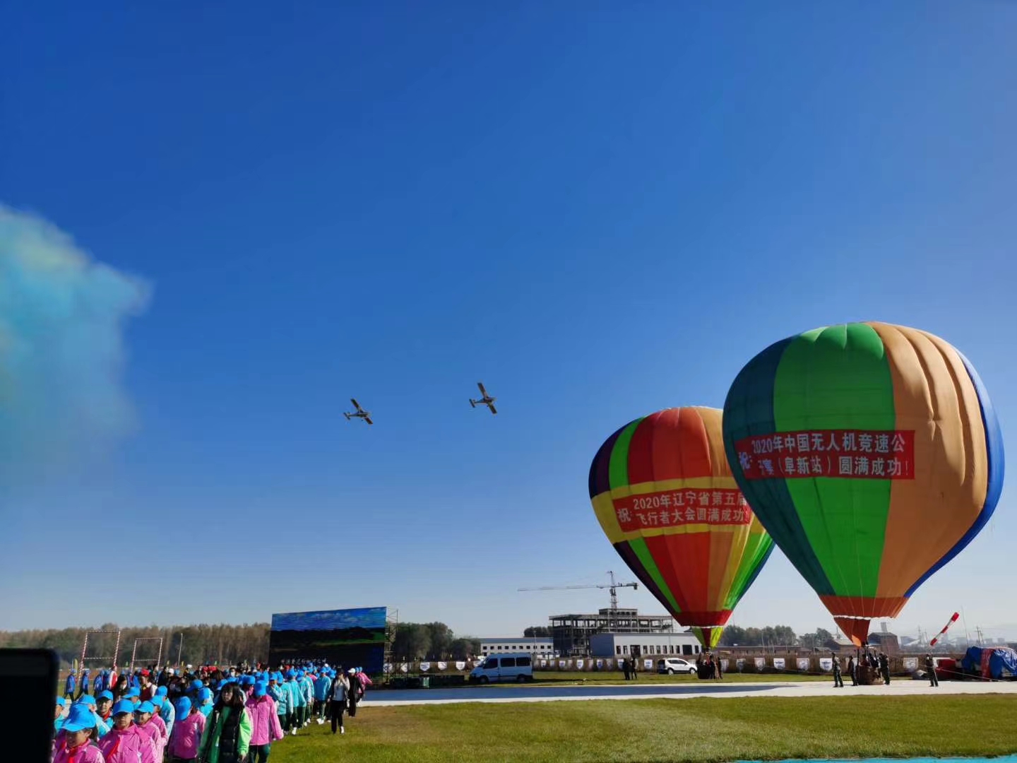 在当日上午的开幕式后,一个多小时的热气球滞空助力、三角翼通场拉烟、轻型运动飞机飞行、直升机飞行等飞行表演,把天空妆点得五彩斑斓,数千观众现场抬头目不转睛观看表演,集体“治疗”颈椎病。来自附近的村民赵庆武表示:“过去只在电视里或网络上看过飞行表演,这回是在家门口近距离看,感觉非常炫,也非常震撼!”