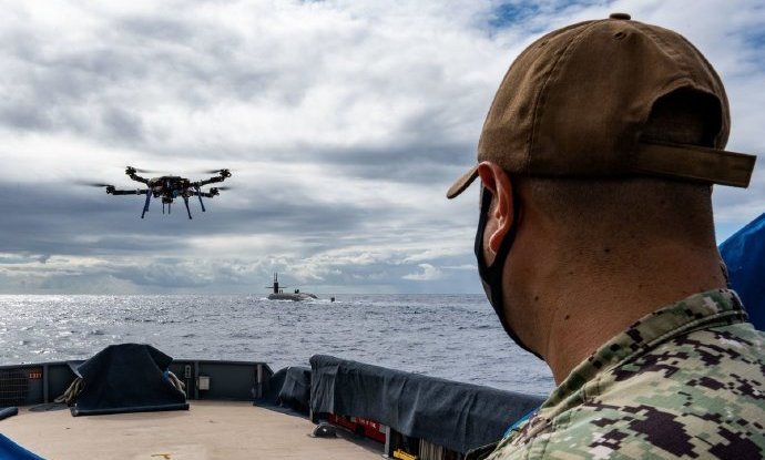 据俄罗斯塔斯社10月21日报道,10月20日,在美方西海岸附近上演了惊险一幕,一艘核潜艇正在海面上行驶,这时候一架无人机悄悄向核潜艇飞去。当无人机飞到潜艇上空的时候,居然将核潜艇逼停下来,随后无人机降落在潜艇舰桥上面。五角大楼方面表示,这完全出乎意料。