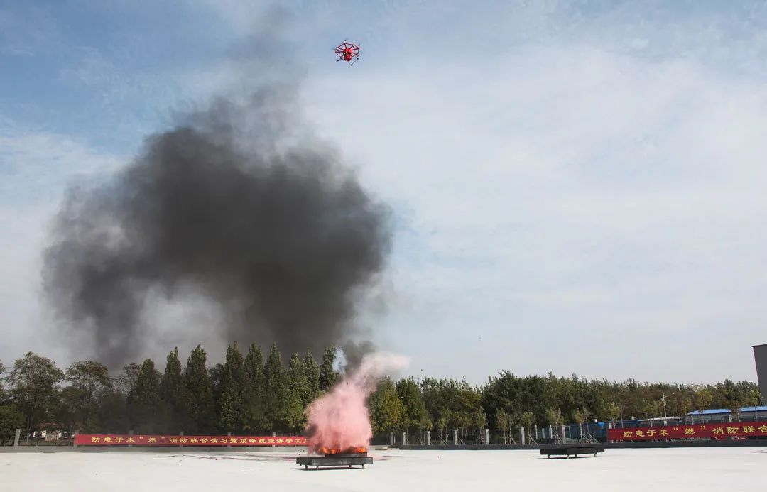 工厂参观之后,在厂区还进行了智慧消防的演练活动,峰飞集团的V50大白鲨与顶峰的智慧消防无人机F240风火轮共同参加演练,作为国内首个高效智能、协同作战的 “察灭一体“空中智慧消防解决方案,从侦察火情到火情扑灭,V50大白鲨和F240风火轮无缝衔接,高效精准,给嘉宾留下了深刻印象。
